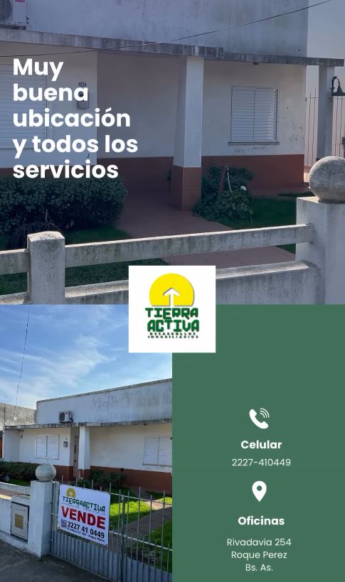 📍Propiedad ubicada en calle Sarmiento entre Sabatte y Lamadrid de la ciudad de Roque Perez.