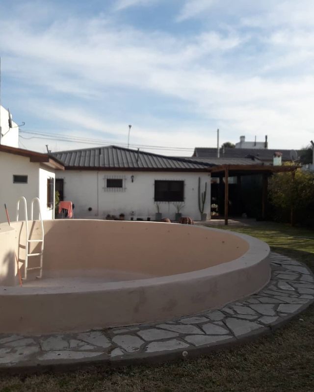 Cuenta con 3 dormitorios, 2 baños, cocina-comedor-living, garage semicubierto para 2 vehiculos; lavadero con cuarto y baño; pileta de natación; quincho con parrilla y fogón.