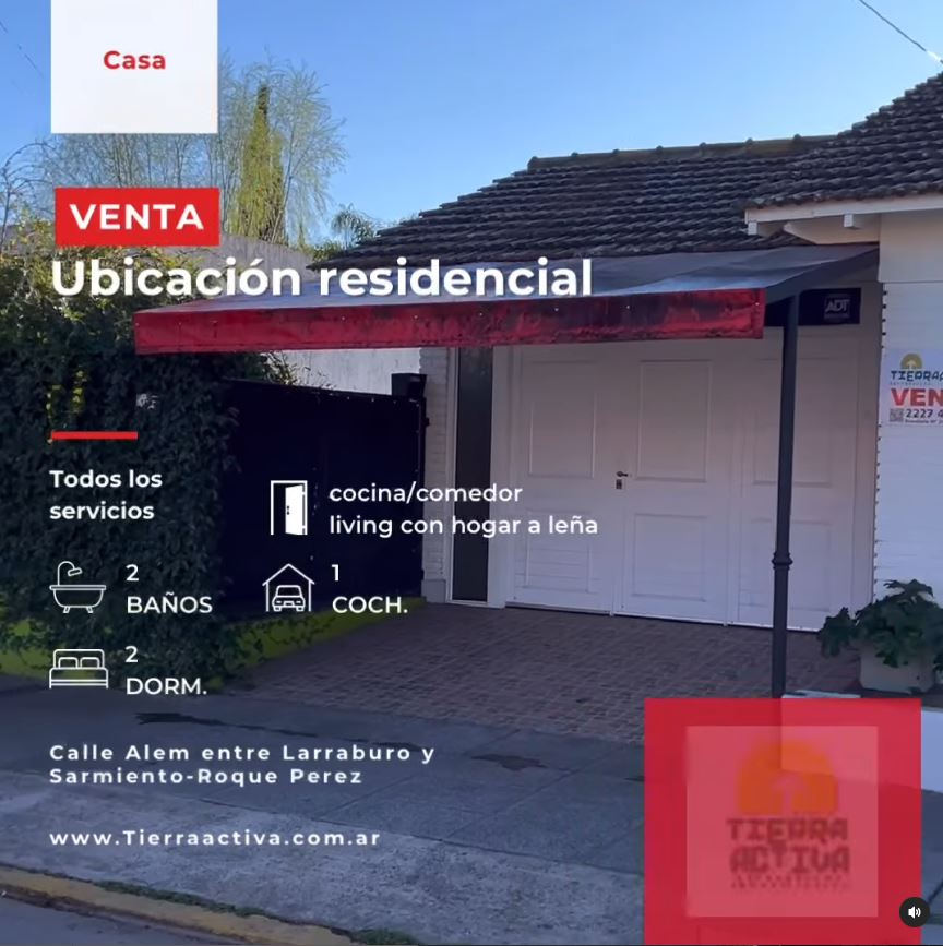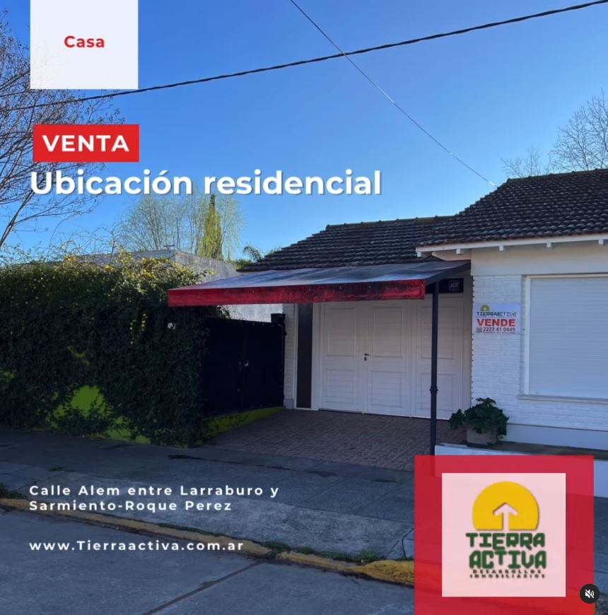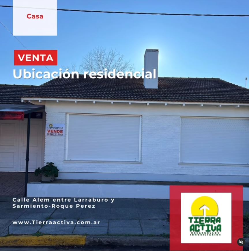 📍Propiedad ubicada en calle Alem entre Larraburu y Sarmiento de la ciudad de Roque Pérez.